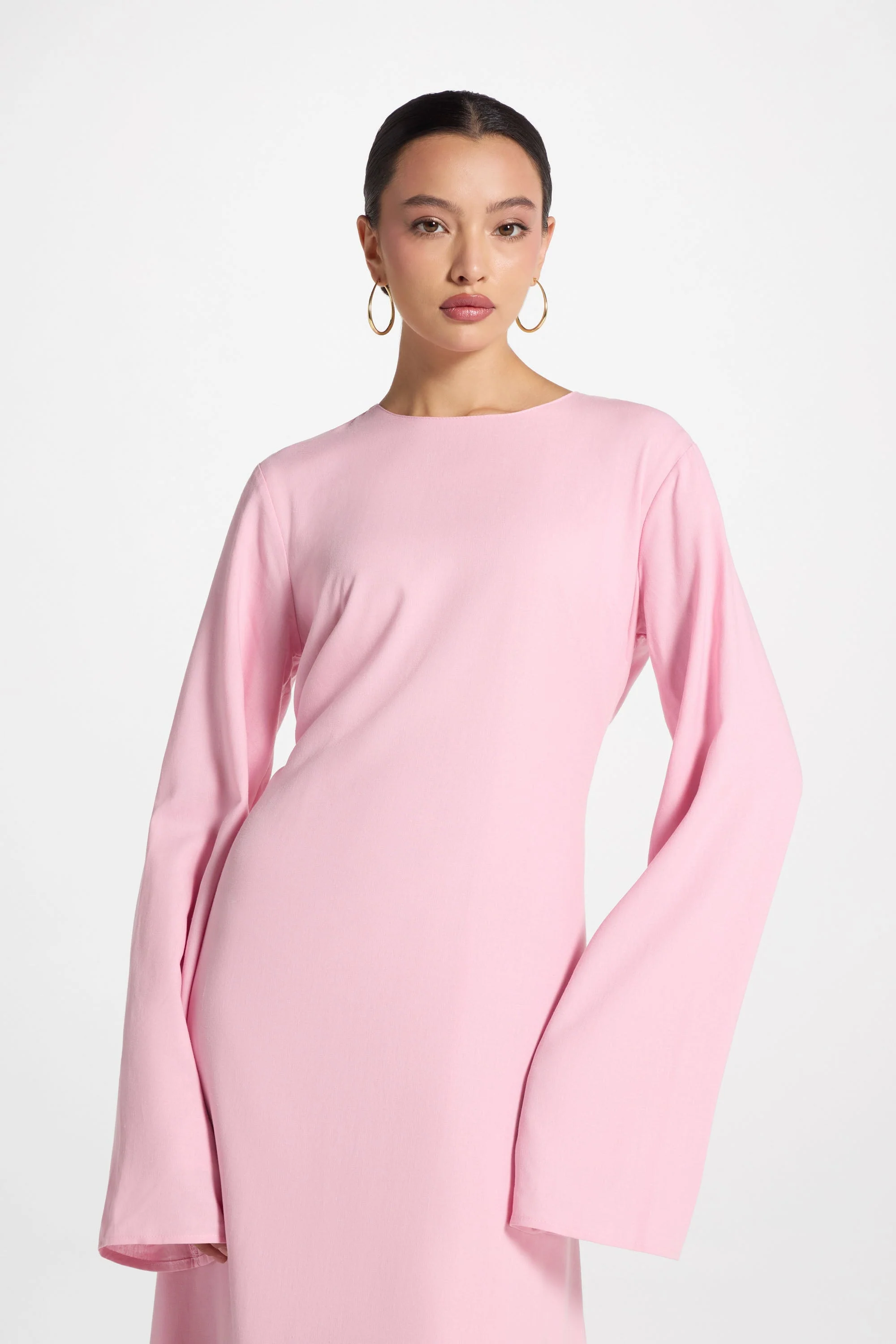 Elevate your everyday wardrobe with the Nyla Linen Tie Maxi Dress in Pink. Crafted from breathable linen, its classic A-line silhouette flatters every figure, while side ties offer a customizable fit for effortless elegance. This timeless maxi dress combines comfort and sophistication, making it an ideal choice for both casual outings and refined occasions.