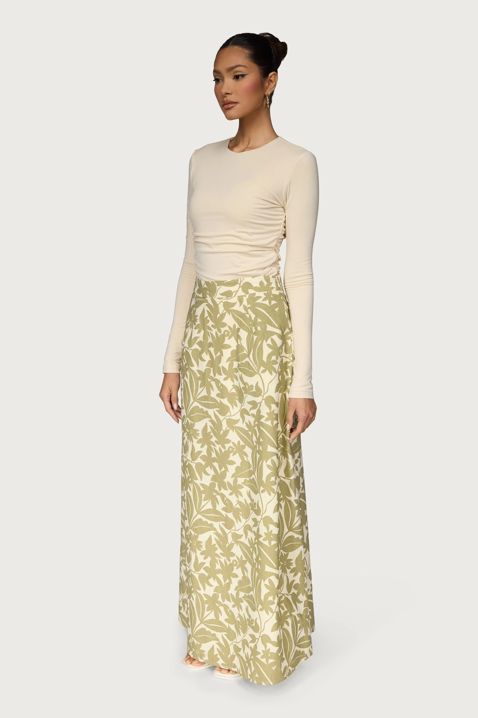 Cotton Printed Maxi Skirt - Green Floral